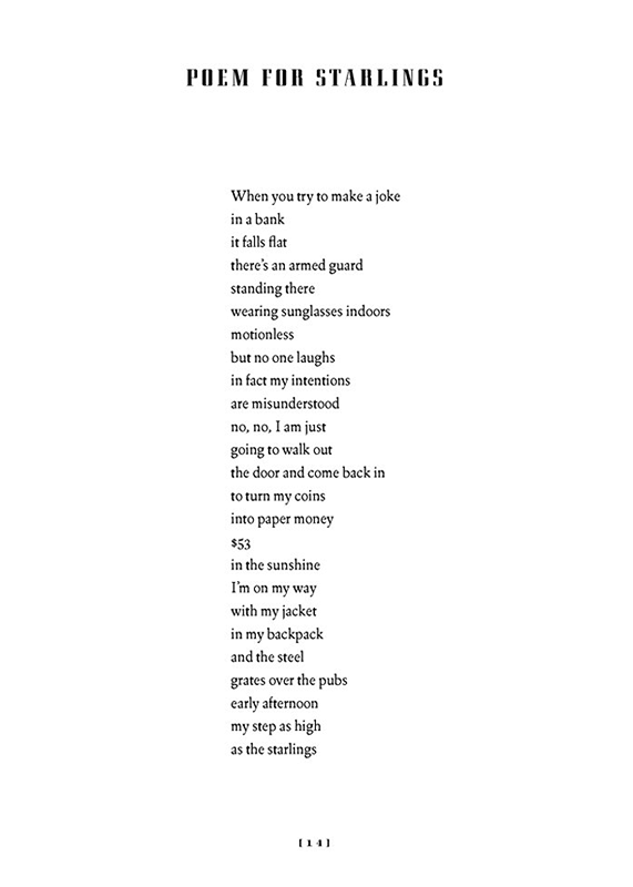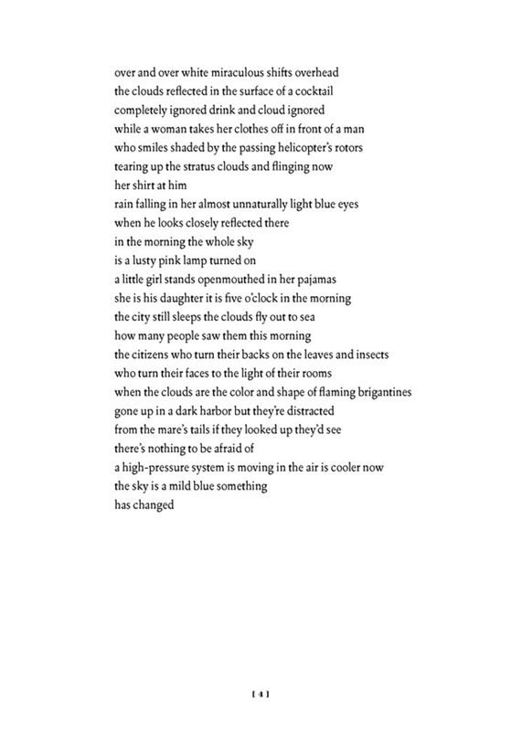 When Rohrer’s unpunctuated, paratactic style works, it works brilliantly; when he falters, it is a faltering born of a new sincerity the world (of which readers are a part) renders suspect, as a form of (good-natured) vice. These poems—and the oeuvre of this poet—deserve careful readings, and re-readings, to train ourselves to perform John Cage’s ironic challenge: to see what it is we’re looking at, and to feel what it is (if anything) we feel.