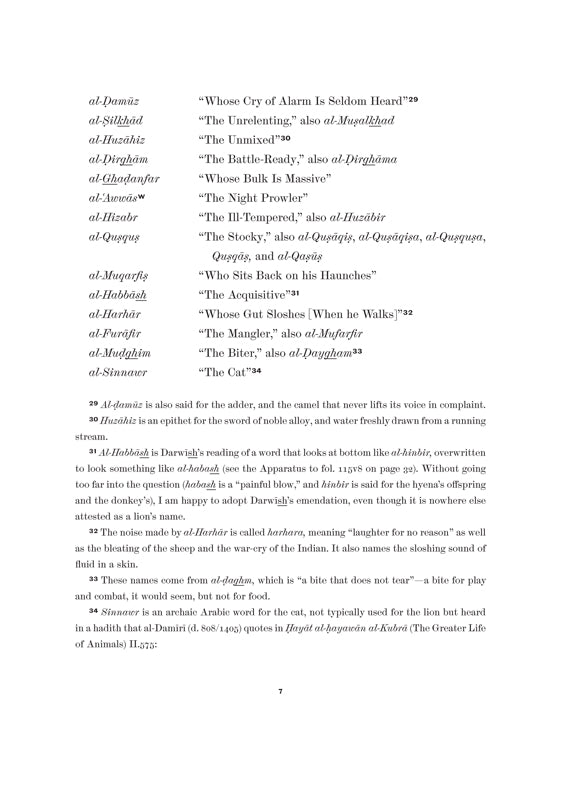 A fascinating volume. Everything in these pages emerges from the 350 names attributed to the mythologised creature of the lion. Through the careful, obsessively detailed index, and alongside the retelling of Arabic grammarians’ arguments, arises a fascinating account of the lavish and important workings of nominal attribution. It’s all in a name, all in a grain of sand, all in a snowflake, all in a mane.