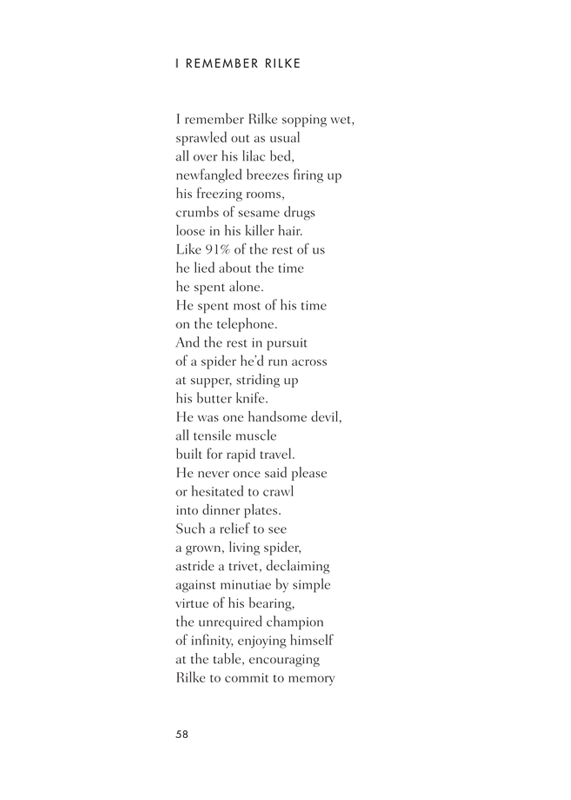 Wier’s poems have an eidetic quality of image; they pass through the mind like ghosts in drag, elegant and unexpected. They resist the nothingness of abstraction, even as they abstract.