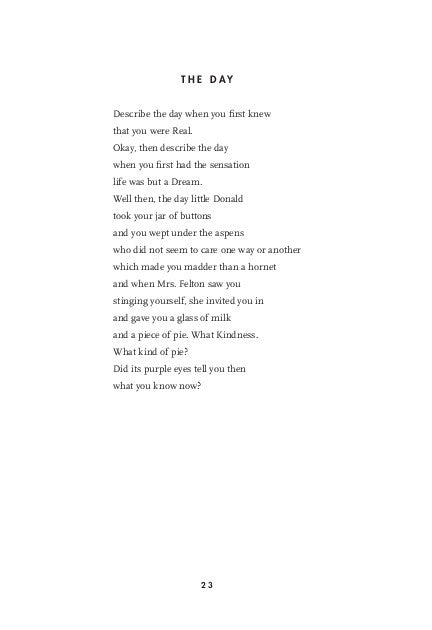 Ruefle's the only poet going who, when I try to describe her work, makes me throw up my hands and say, “Oh, what's the use?” She lives in the side of a hill and eats children, OK? Get reading.
